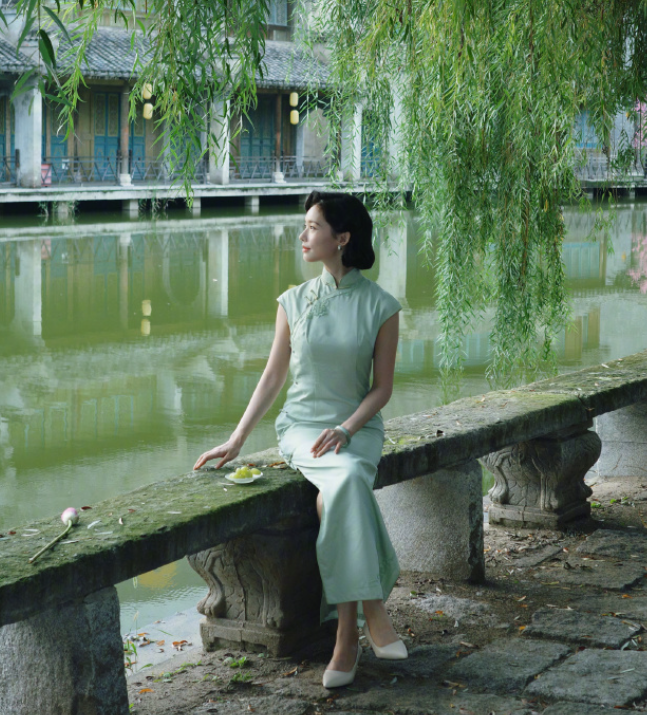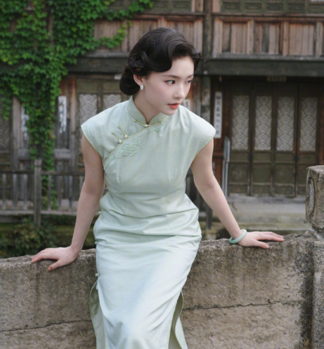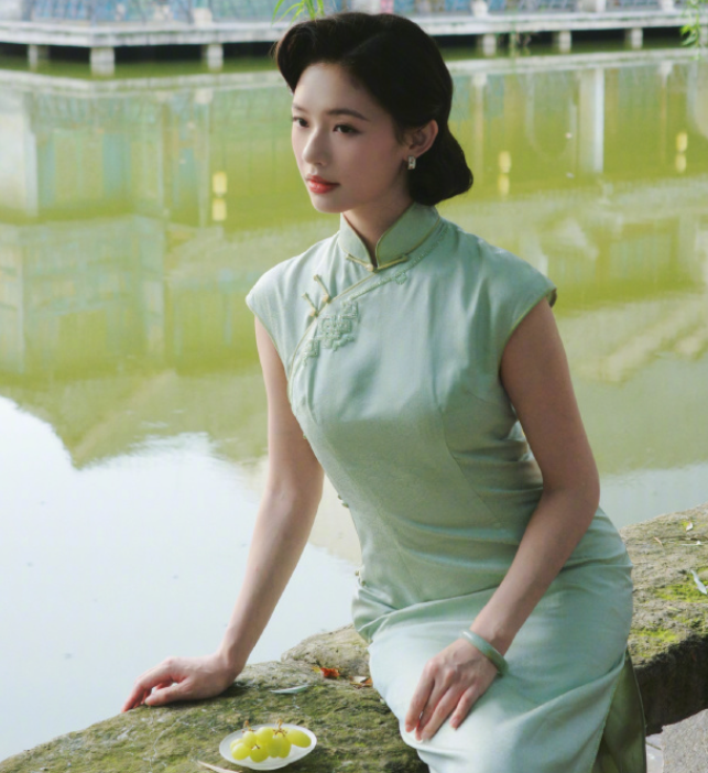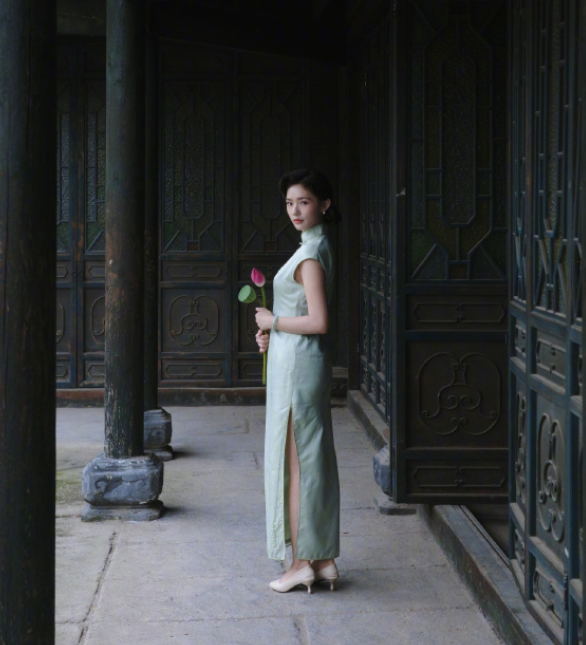 林允的绿色旗袍, 状态真的不要太好, 超可以的!